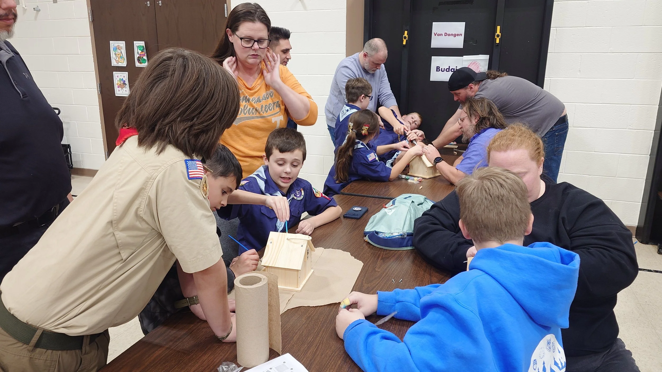For our final Den Meeting of 2025 Bears and Wolves also got together to make two different kinds of houses, some for birds, and some to eat, and had a lot of fun making both, even though we only ate the Wolves’ houses. We decided they tasted better.