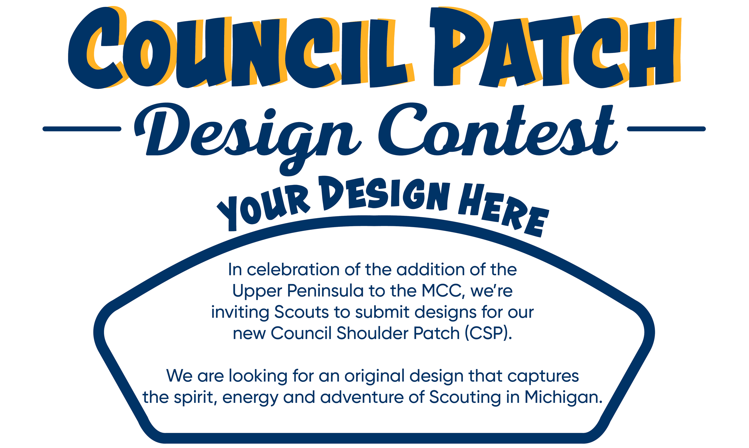 Our Council is looking for creative Scouts to design the next Michigan Crossroads Council Shoulder Patch (CSP). The Upper Peninsula has joined us, and we want to make sure our new CSP reflects our full council.